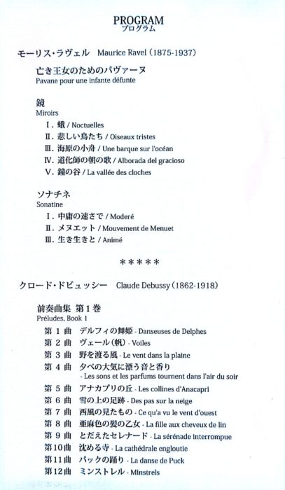 今回のプログラムはラヴェルとドビュッシー