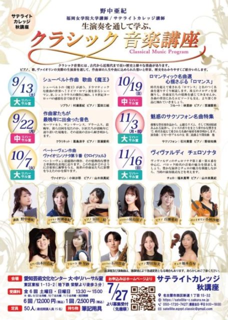 クラシック音楽講座に伴奏者として出演いたします。