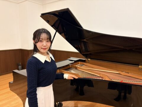 スタジオのグランドピアノと一緒に